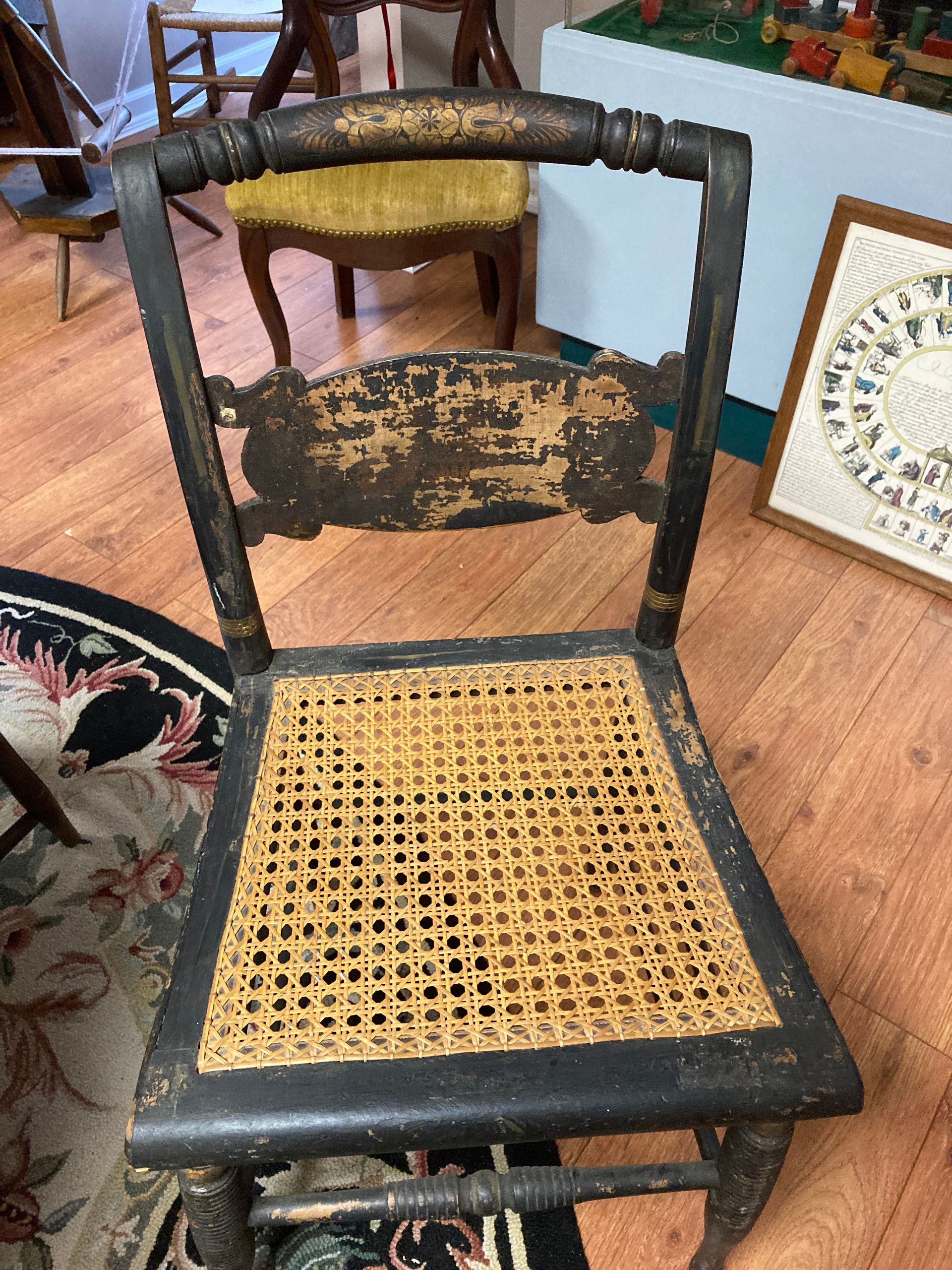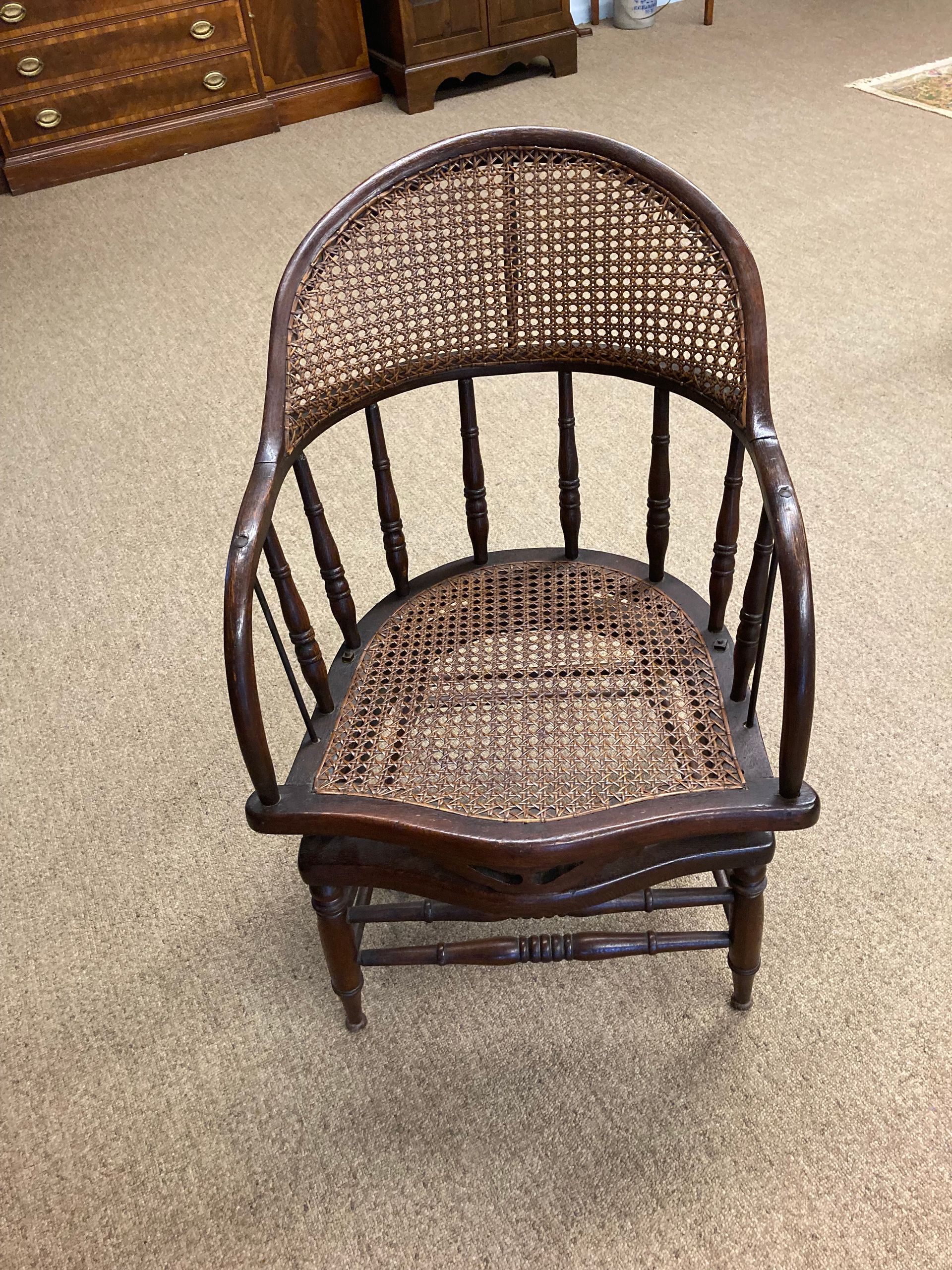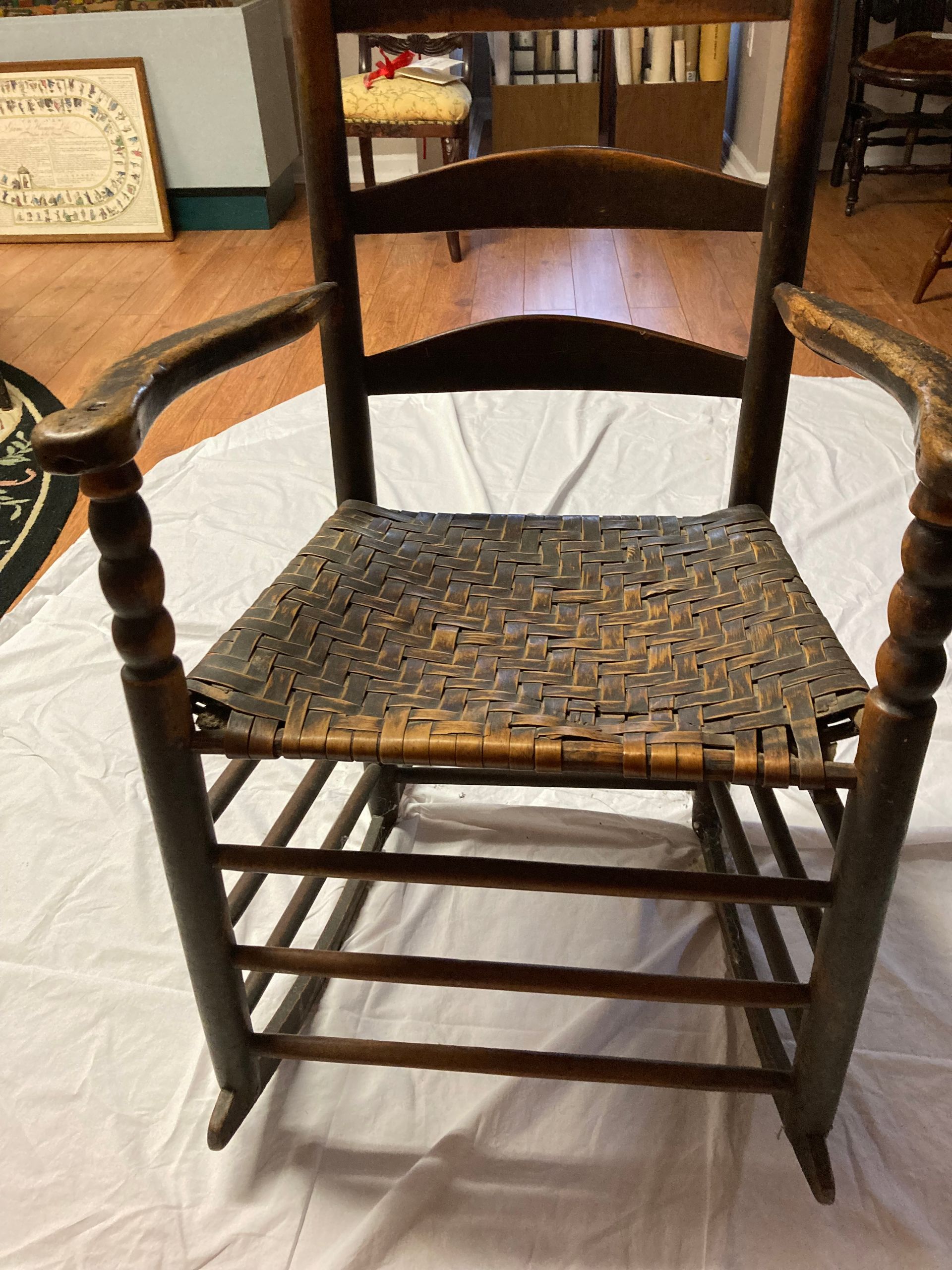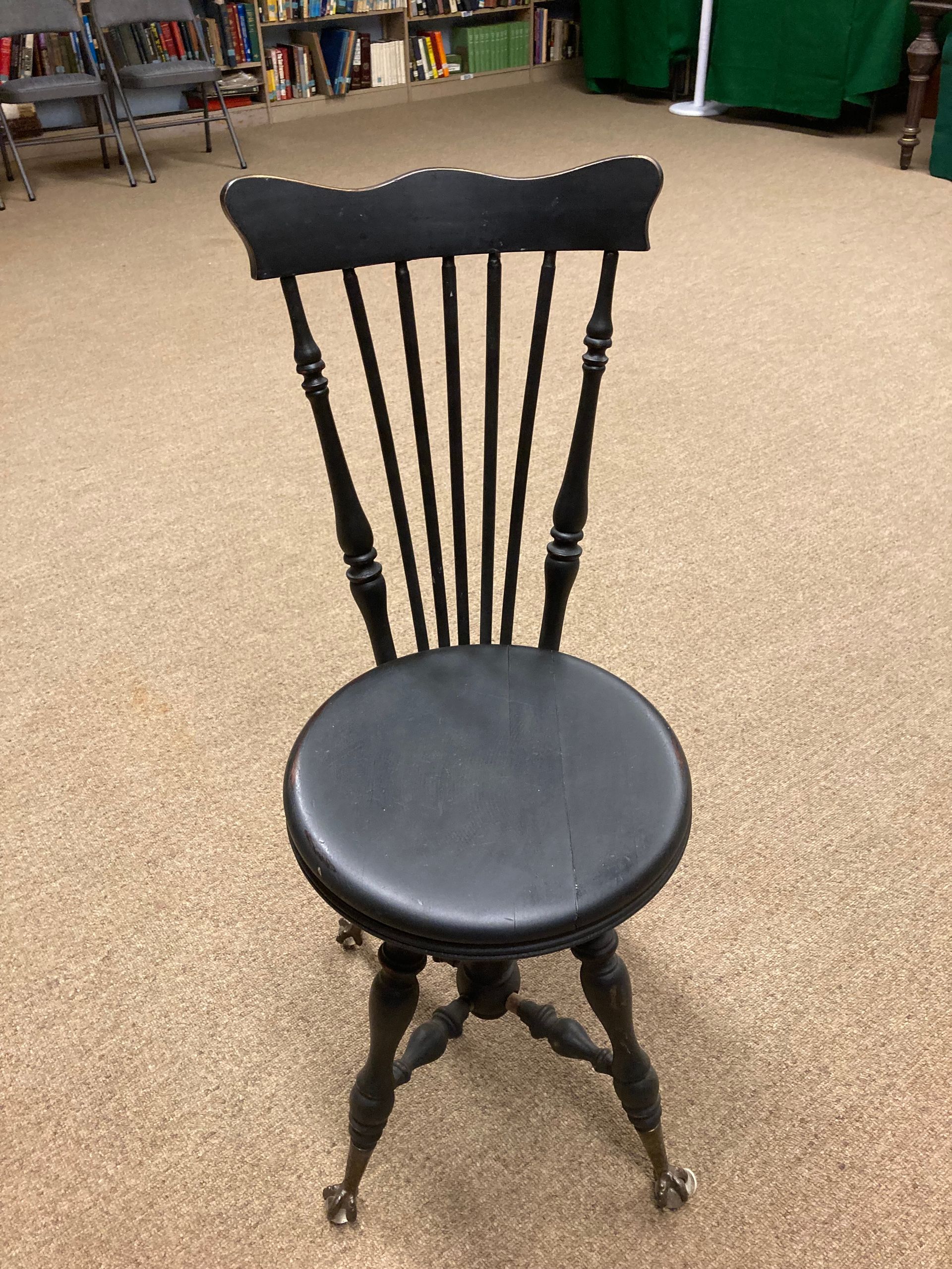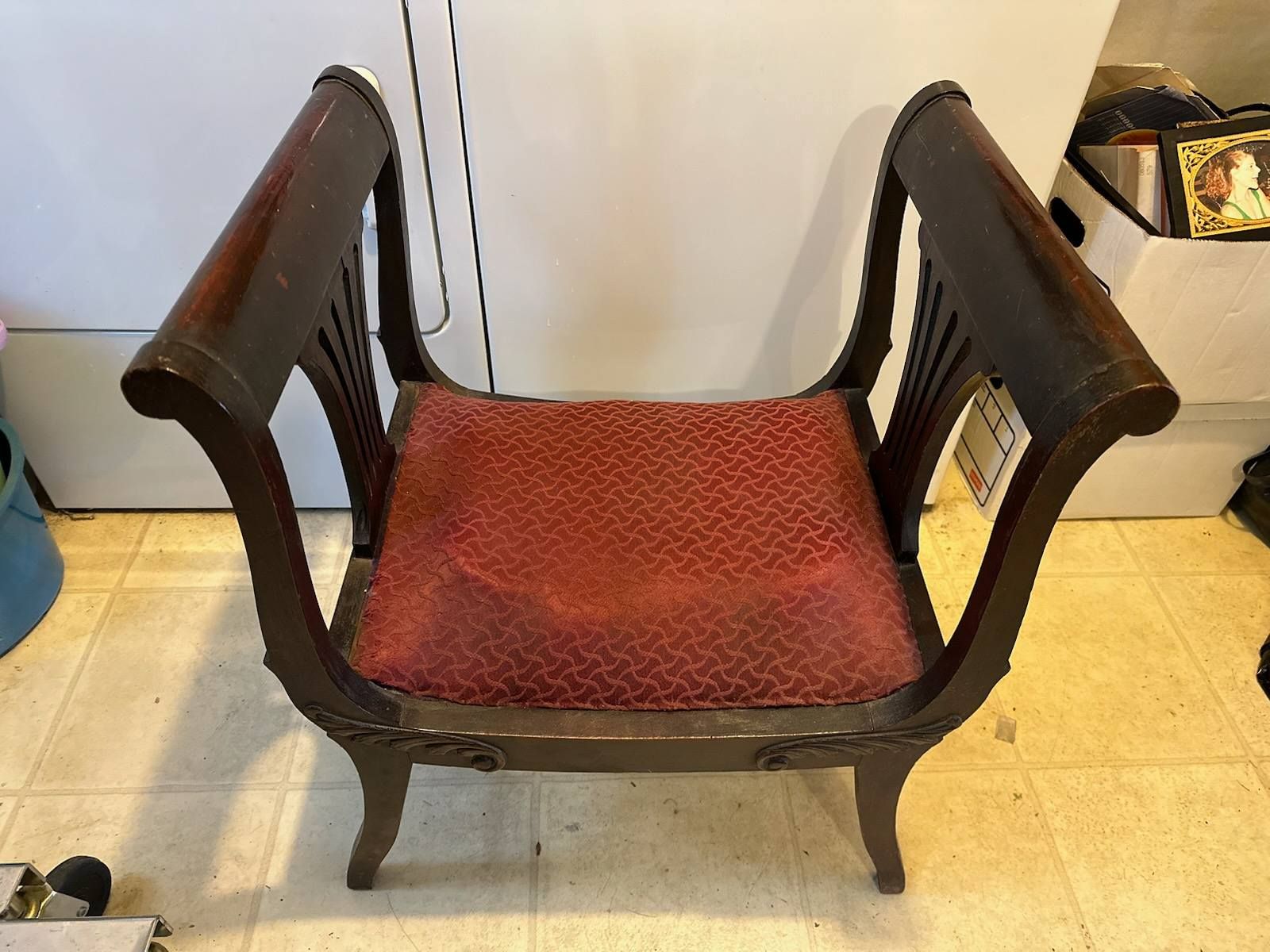 George LaFante, a noted local furniture craftsman, provided the fabric and the labor to reupholster it in rich burgundy velvet. In 2022, the chair was again reupholstered by SHS lifetime members, Judi and Stuart Buncher.