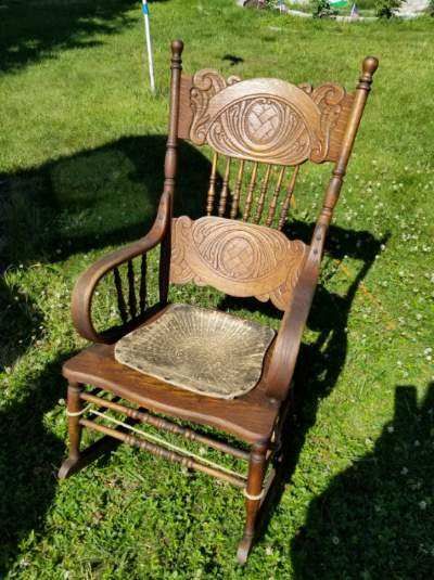 The chair probably was a product of the M.C. Lilley & Co, Columbus, Ohio. The company specialized in producing high quality ornate regalia chairs for societies, clubs and fraternal organizations.