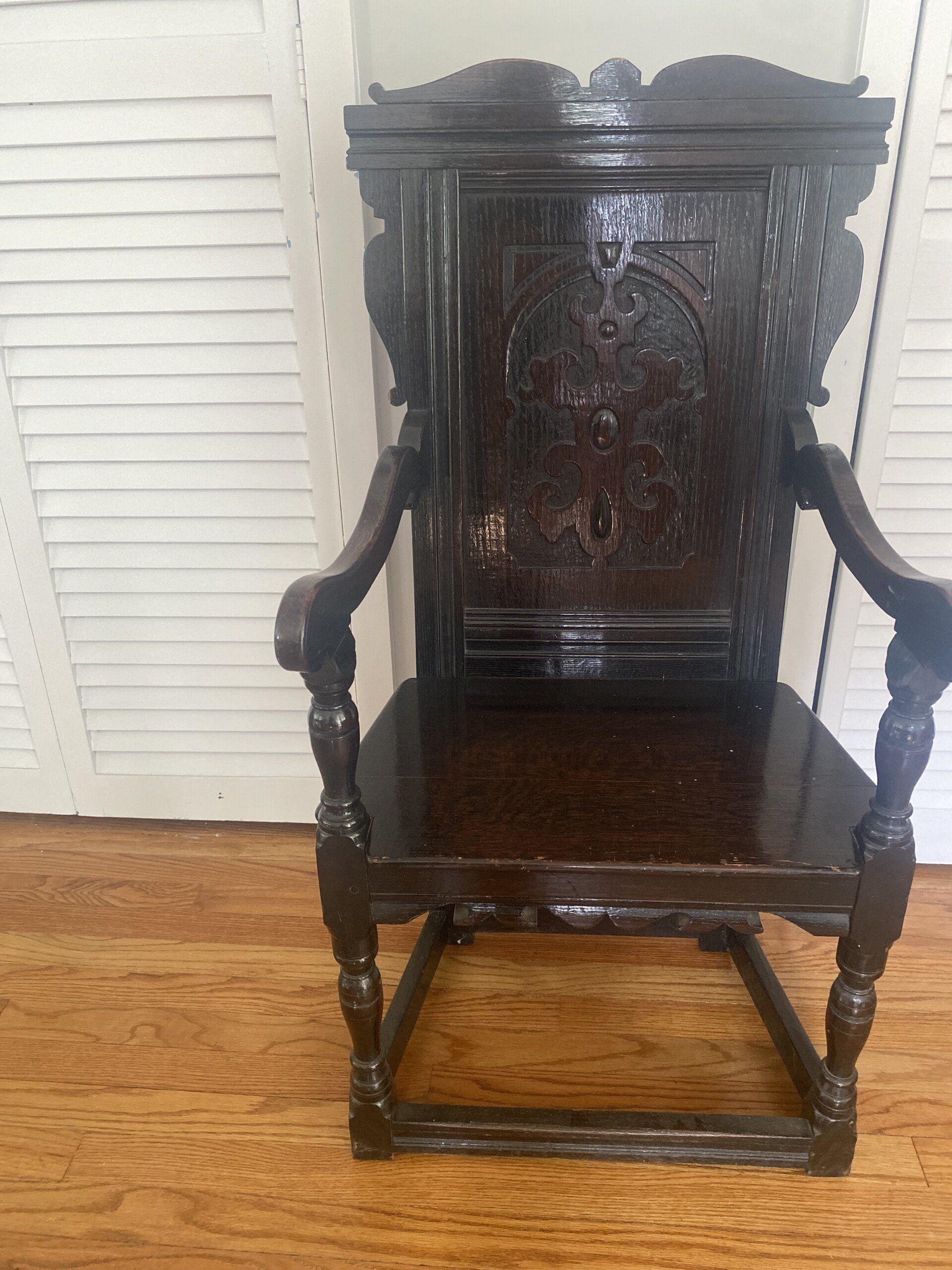 This high-back, heavily-carved oak chair was donated to the Borough of Shrewsbury Council for the use as "The Mayor's Chair" when borough business was conducted in the adjacent Lippincott-Meacham-Tallman-Wardell manor house (c.1820) prior to relocating to Borough Hall in 2003. Mayor Dorothy Blair Manson (1979-1990) conducted the affairs of the borough while seated in this ornate chair.